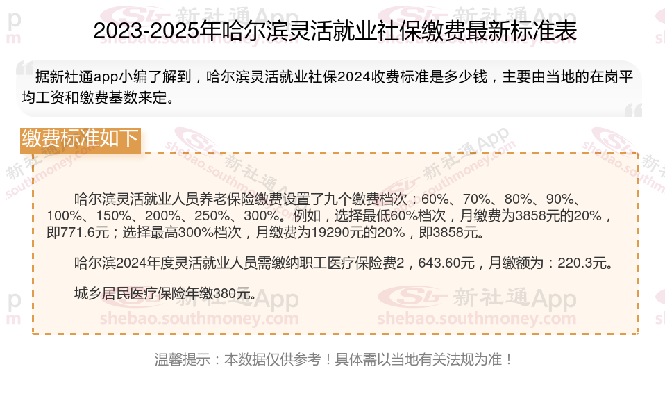 那么,灵活就业者社保是多少钱一个月多少钱?根据新社通app-社保缴费查询工具提供的2025社保缴费标准详情数据: