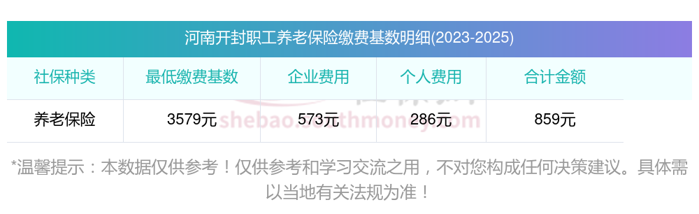 据新社通app显示,河南开封养老保险缴费基数2023-2025年最新标准如下: