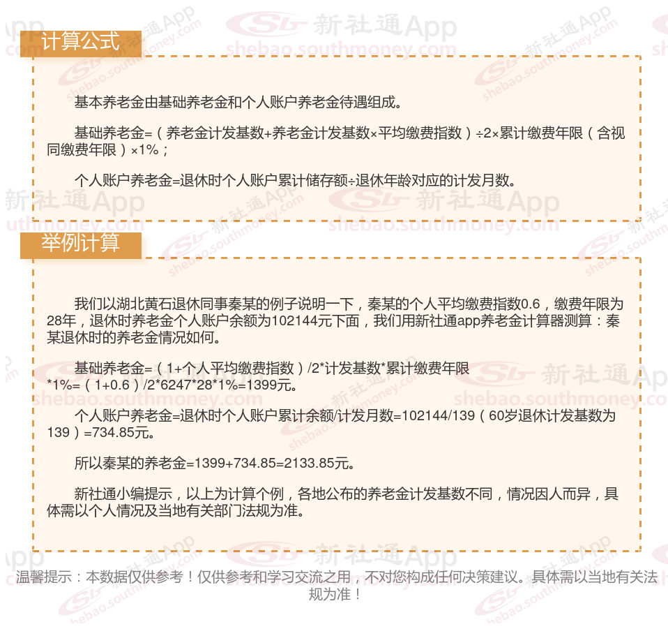 湖北黄石社保养老保险交满能领多少钱?(在线计算举例说明)