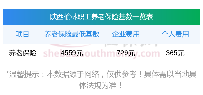 陕西榆林养老保险缴费基数2023-2024年最新标准(最低)