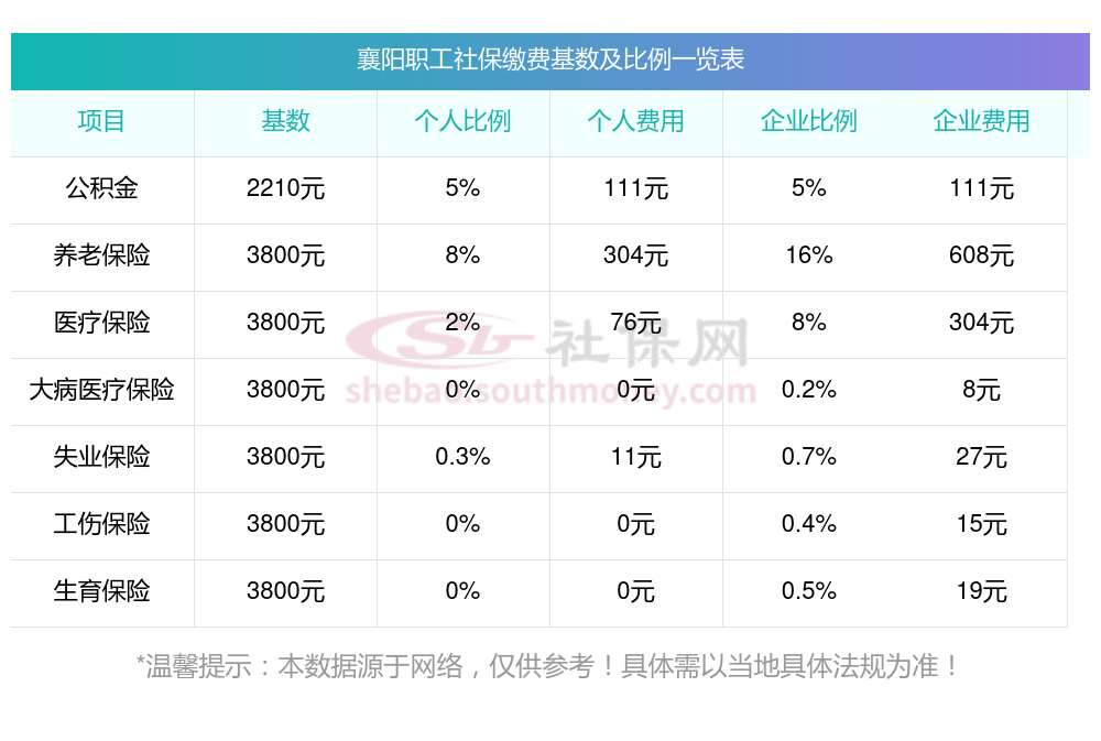 襄阳社保缴纳情况是怎样的?一起和社保丫丫一起来看看下面的明细表: