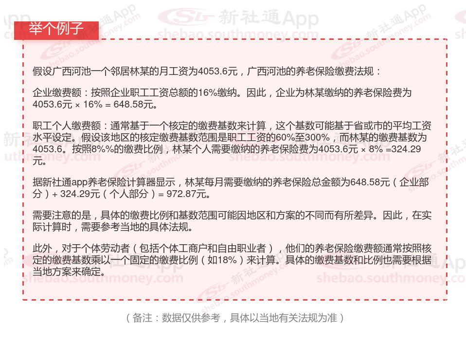 广西河池养老保险缴费基数2023-2024年最新标准(最低)要交多少钱一个月?