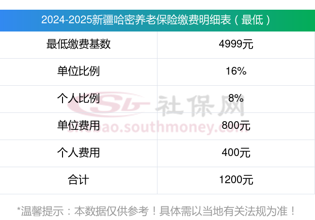 新疆哈密养老保险缴费基数2023-2024年最新标准(最低)
