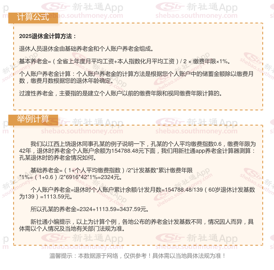 江西上饶养老保险退休能领多少钱?(在线计算举例说明)
