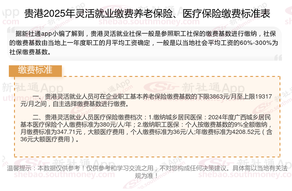 贵港社保缴费多少钱?下表是2024-2025年贵港社保费用明细参考,根据新社通app-社保缴费查询工具提供的最新数据如下: