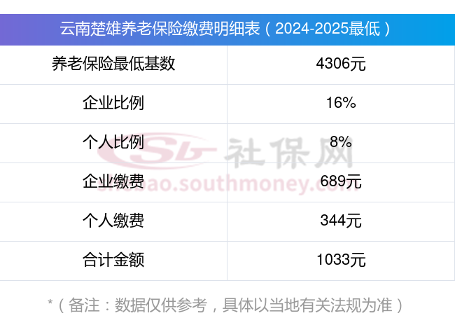 云南楚雄养老保险缴费比例及基数标准2023-2024最新消息