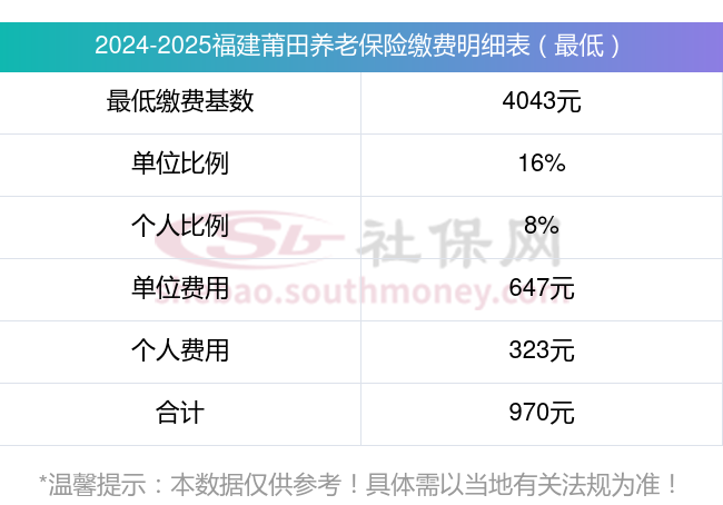 查阅新社通app显示,福建莆田2025年福建莆田社保养老保险缴纳基数及比例如下:
