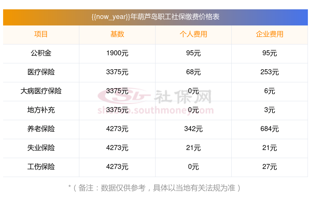 2025年葫芦岛社保缴费多少钱?下表是2023-2024年葫芦岛社保费用明细参考,如下: