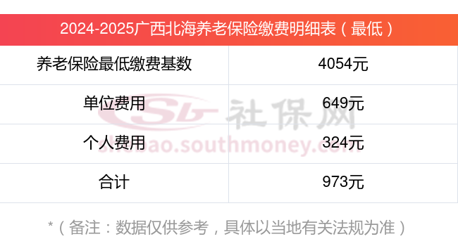 据新社通app获悉,2025年广西北海养老保险缴费金额的计算公式如下: