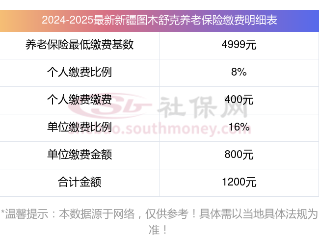据新社通app显示,新疆图木舒克职工养老缴费基数是多少,2024-2025年新疆图木舒克养老保险基数明细如下: