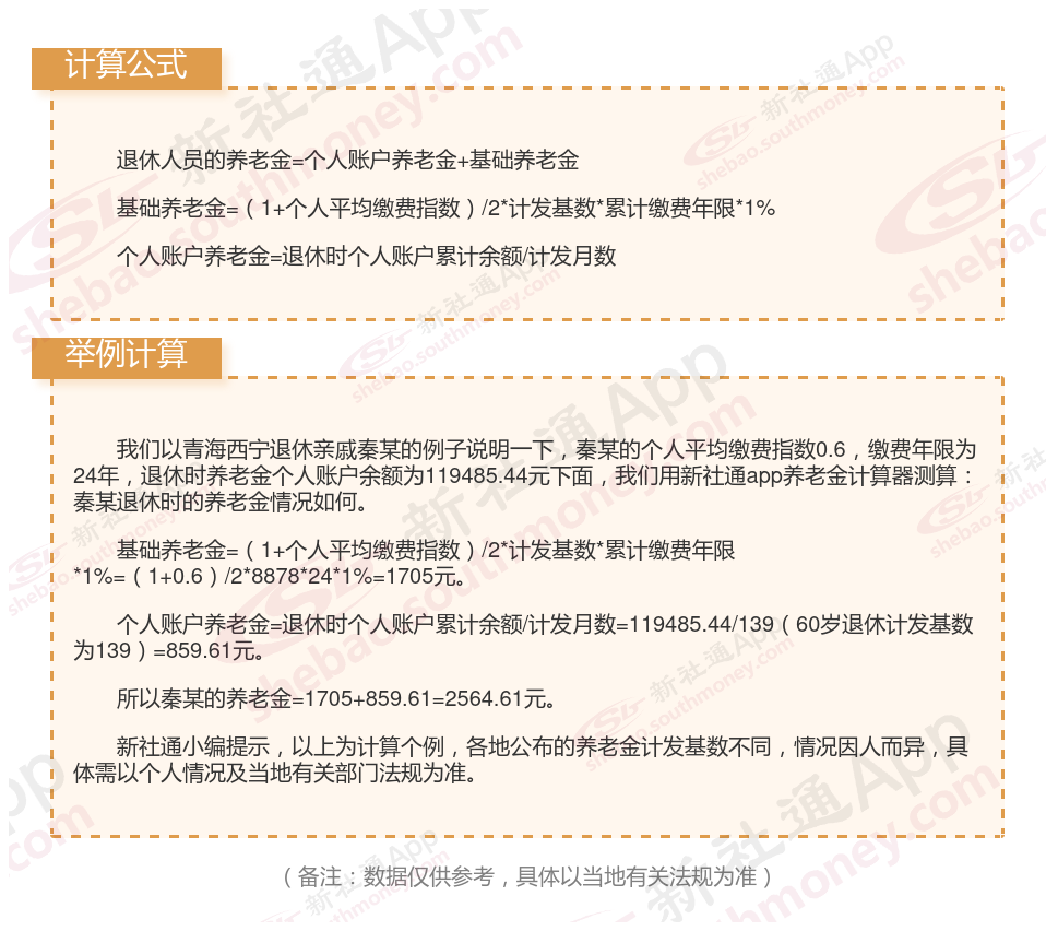 青海西宁养老金计算公式2024年计算方法(在线计算器)