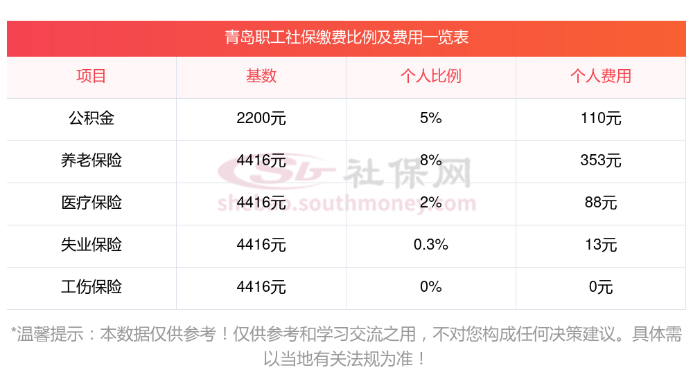 2025年在职人员参保缴费4239元,下表是青岛社保费用明细参考,根据新社君-社保缴费查询工具提供的最新数据如下: