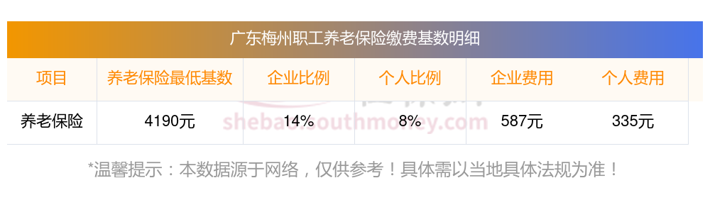 广东梅州养老保险缴费基数2023-2024最新标准 一个月要交多少钱?