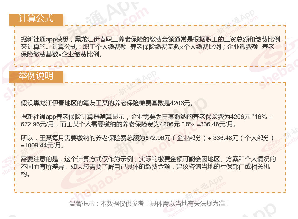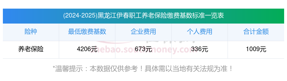 黑龙江伊春养老保险缴费基数2023-2024年最新标准(最低)要交多少钱一个月?