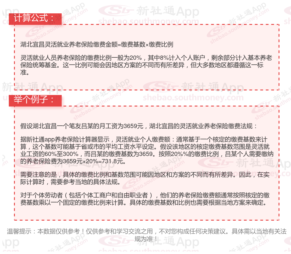 湖北宜昌灵活就业人员基本养老保险缴费基数暂按不低于3659元;