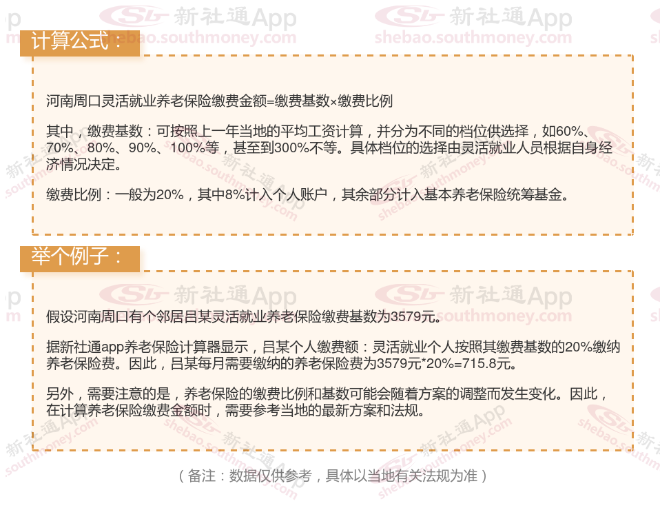 据新社通app显示,2024-2025年河南周口灵活就业养老保险的缴费标准: