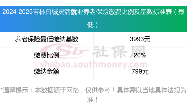 吉林白城灵活就业人员基本养老保险缴费基数暂按不低于3993元;