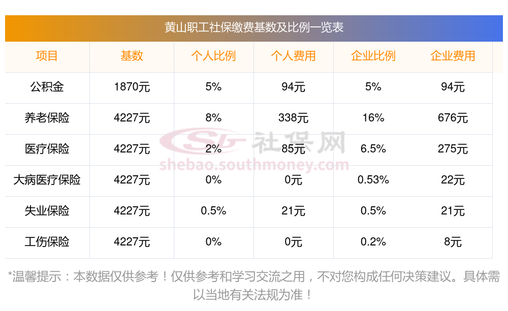 2025黄山社保缴费标准一览表?新社通app-社保缴费查询工具提供的最新数据如下: