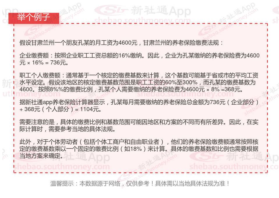 甘肃兰州养老金计算公式2024年计算方法(在线计算器)