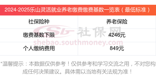 据新社通app显示,乐山灵活就业养老保险最低缴费基数为:4246元;个人的缴费比例分别为:20%;
