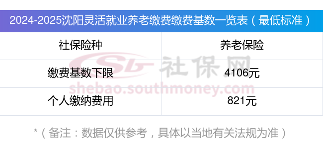 据新社通app显示,沈阳灵活就业人员养老保险缴费基数2024-2025年最新标准如下: