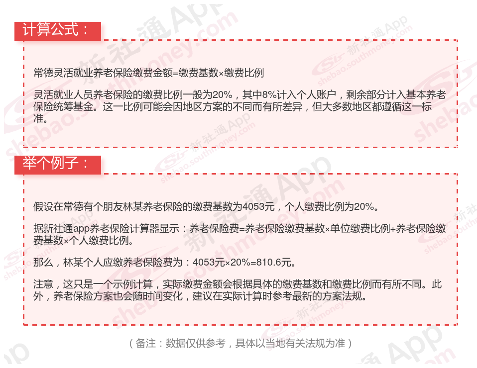 据新社通app显示,2024-2025年常德灵活就业养老保险的缴费标准: