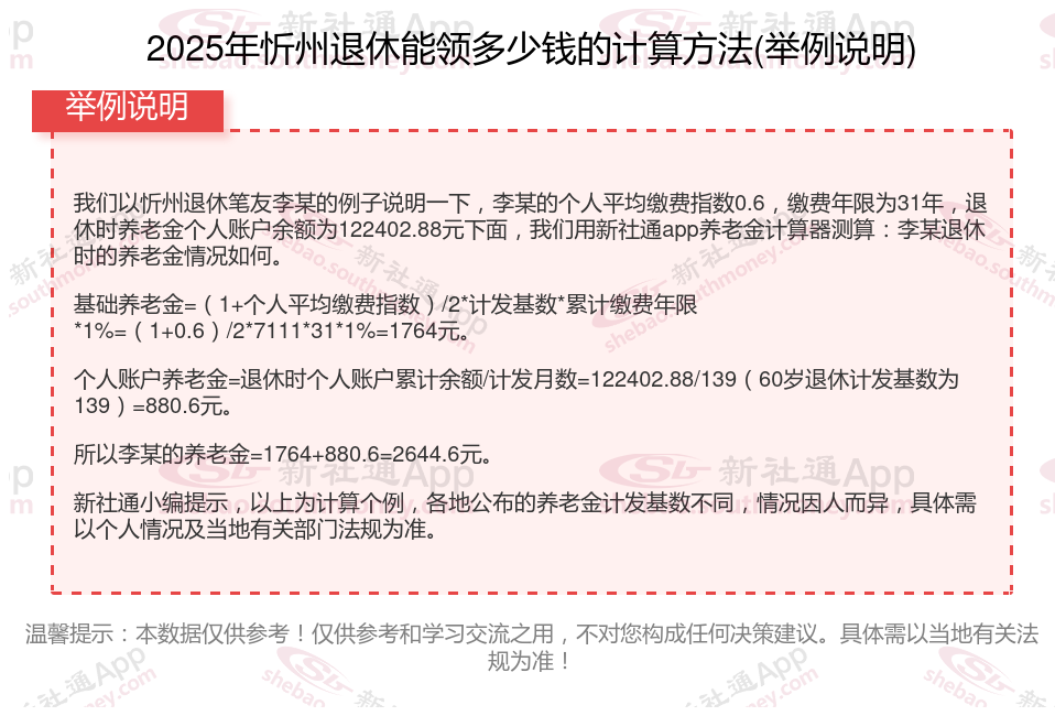 假设忻州邻居吕某的工资总额为3863元,那么吕某的缴费基数就是3863元的60%到300%之间。如果他选择按照缴费基数为3863,据新社通app养老保险计算器测算显示,吕某个人缴费额就是3863元*20%,等于772.6元。
