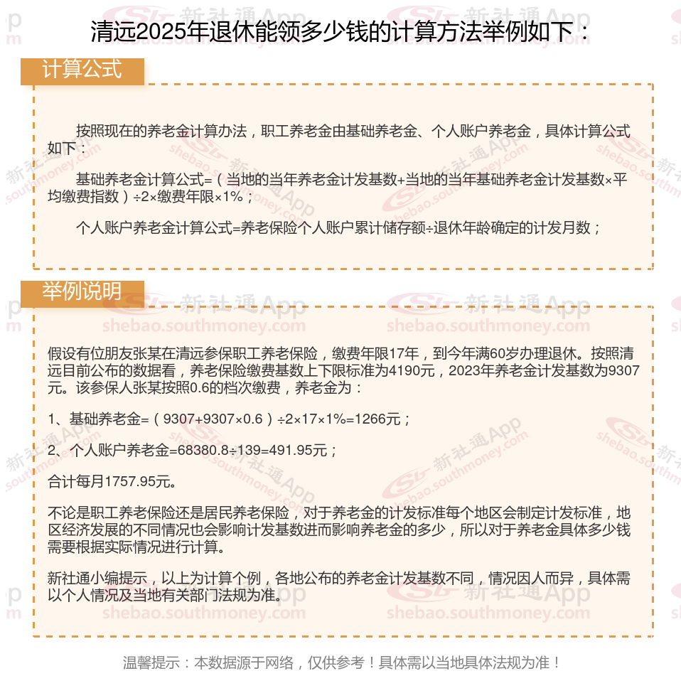 清远养老保险退休能领多少钱?(在线计算举例说明)