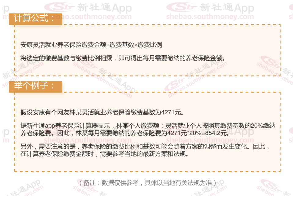 据新社通app显示,安康灵活就业养老保险缴费基数2024-2025年最新标准如下: