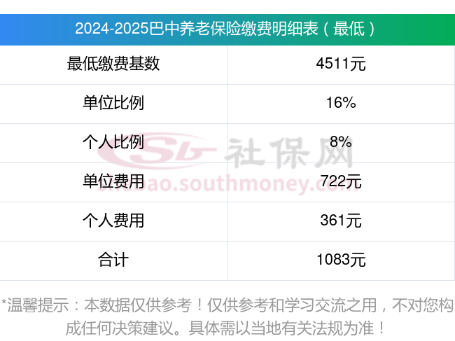 据新社通app获悉,巴中2025年职工养老保险缴费金额的计算涉及到缴费基数和缴费比例两个关键因素。