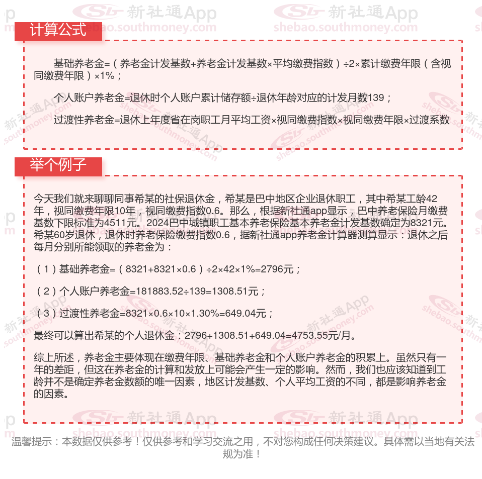 巴中养老金计算公式2025年计算方法(在线计算器)