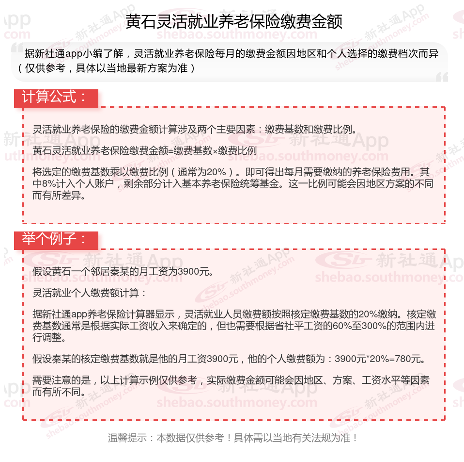 据新社通app显示,2024-2025年黄石灵活就业养老保险的缴费标准: