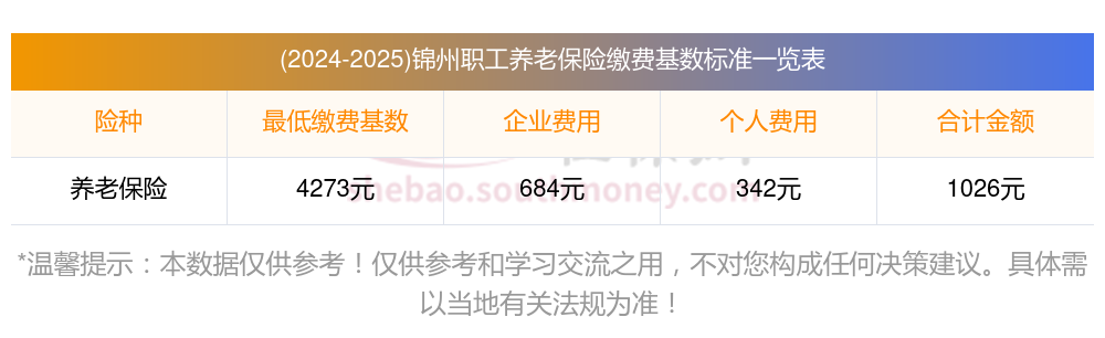 锦州养老保险缴费基数2023-2024年最新标准(最低)要交多少钱一个月?