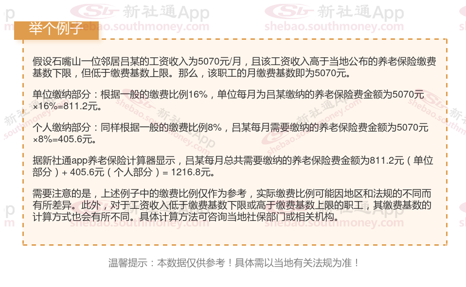 据新社通app显示,石嘴山2024-2025企业职工养老保险的缴费基数为:5070元。