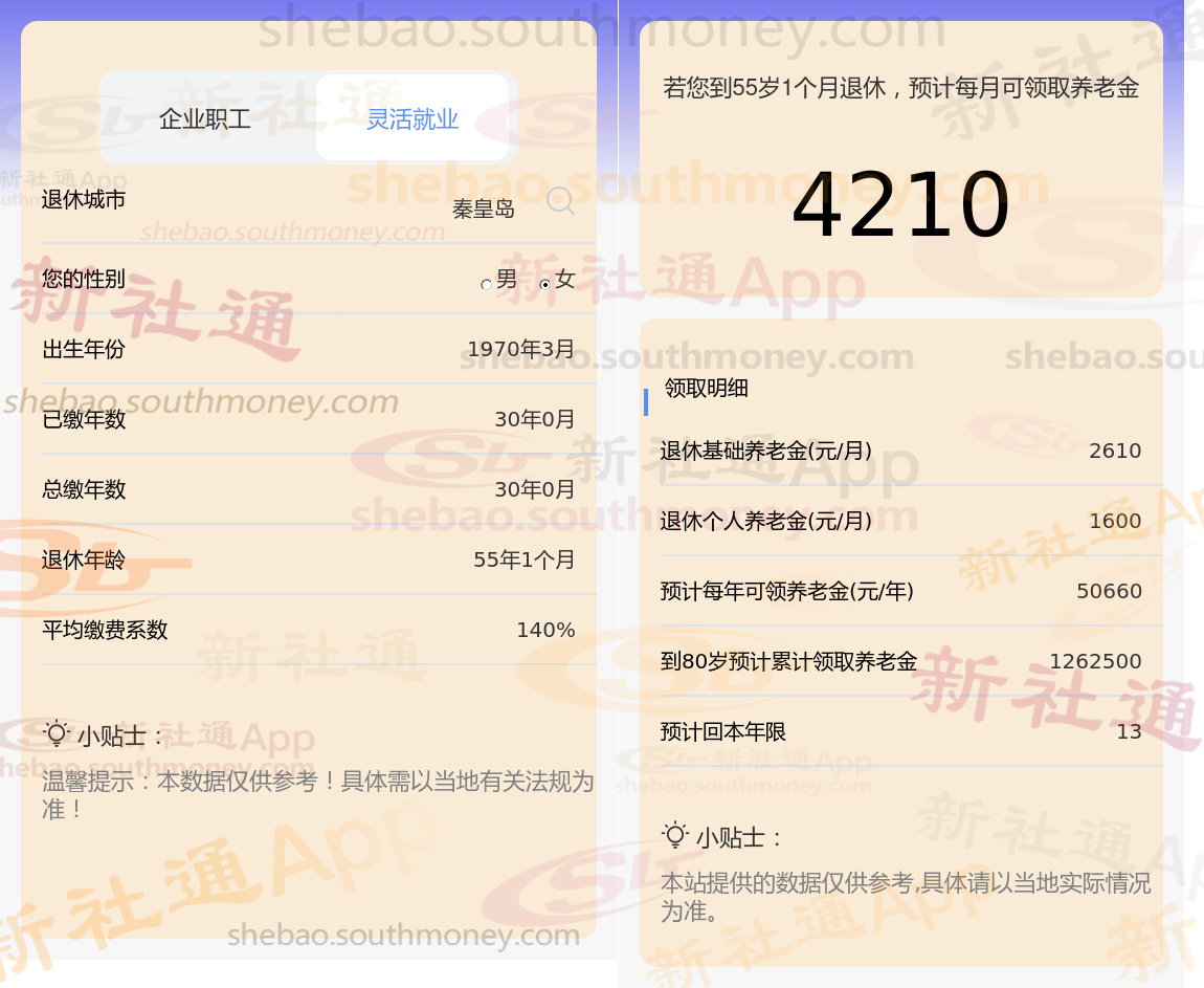 新社通app养老金计算器算出每月能够领取的养老金是多少?