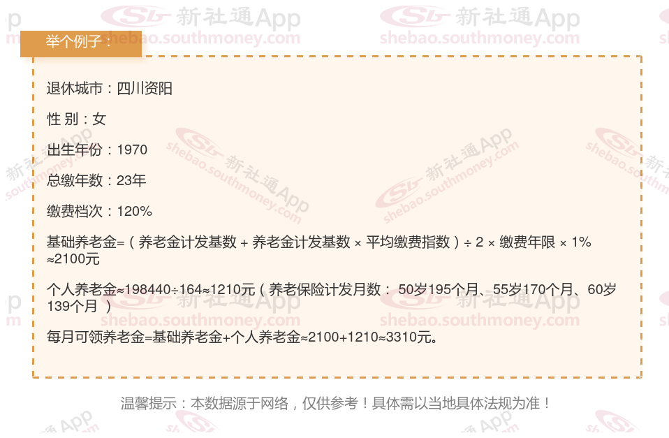 网友吕某退休城市在四川资阳,性别:女,出生年份:1970,总缴年数23年,缴费档次:120%