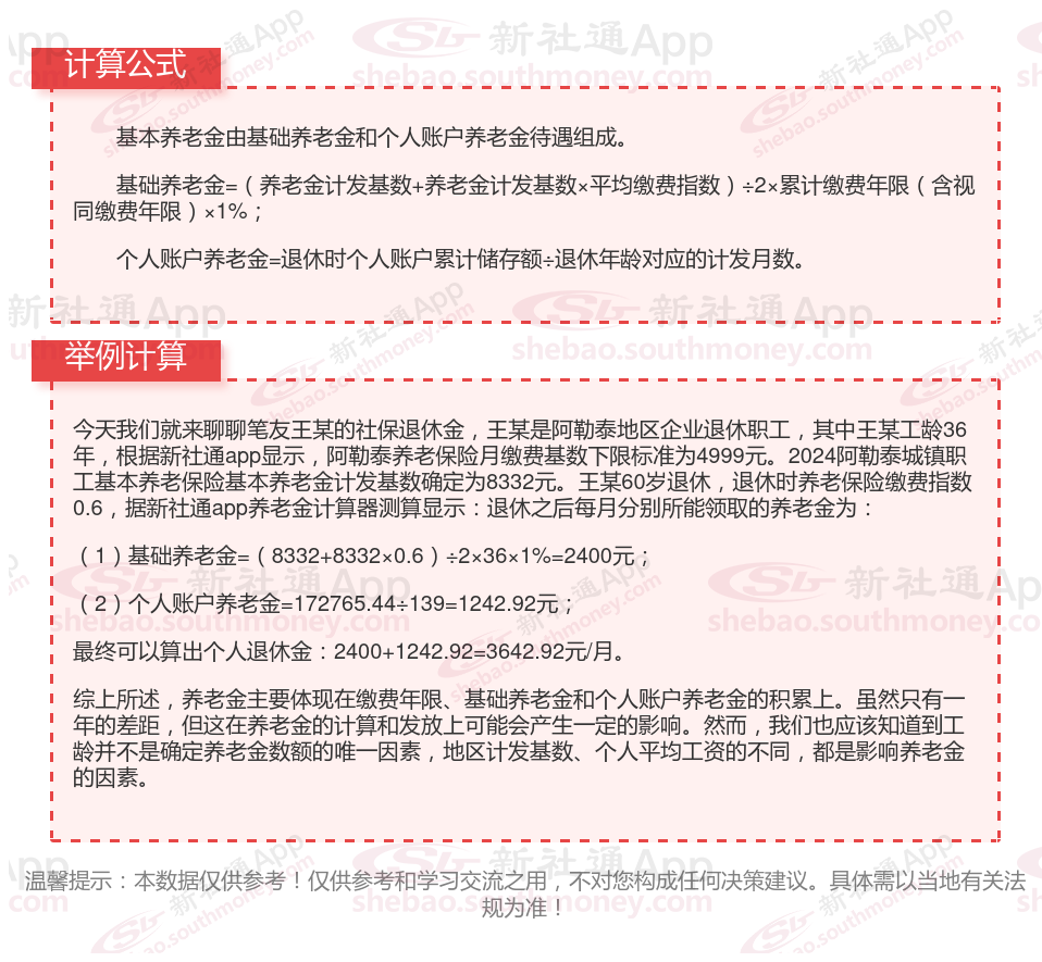 阿勒泰养老金计算公式2024年计算方法(在线计算器)