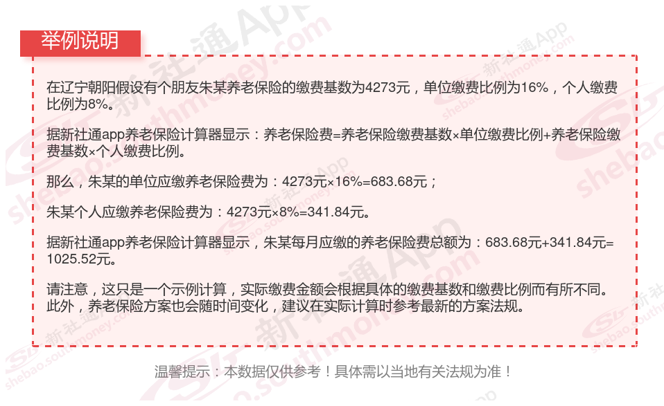 据新社通app显示,辽宁朝阳职工养老缴费基数2023-2025年最新标准是多少,辽宁朝阳养老保险基数明细如下: