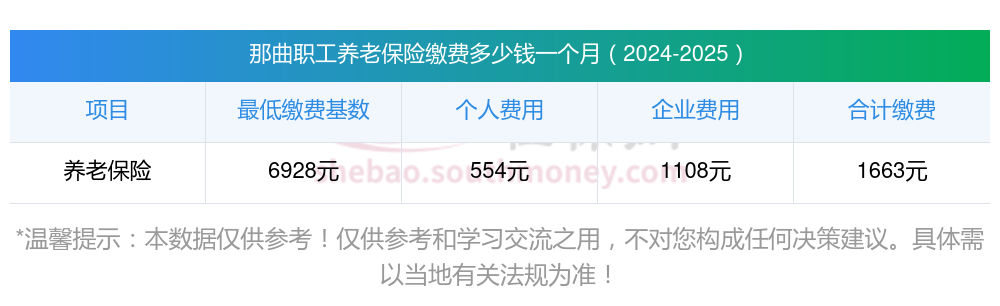 那曲假设某职工养老保险的缴费基数为6927.6元,单位缴费比例为16%,个人缴费比例为8%。