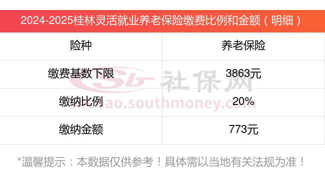 据新社通app显示,2024-2025年桂林灵活就业人员养老保险的缴费标准: