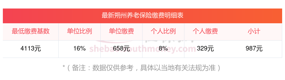 据新社通app显示,朔州职工养老保险最低缴费基数为:4113元;单位和个人的缴费比例分别为:16%、8%;