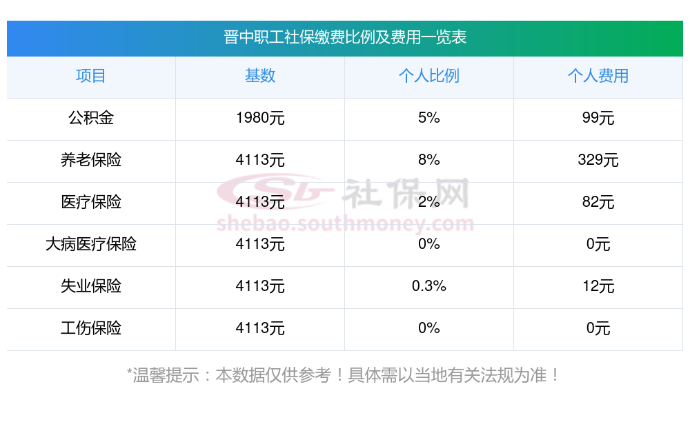社保缴纳比例一览,社保公司和个人各交多少?下表是2023-2024年晋中社保费用明细参考,新社通app-社保缴费查询工具提供的最新数据如下:
