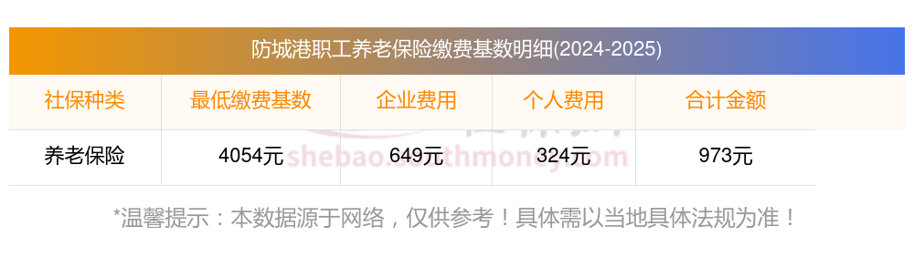 据新社通app显示,防城港企业职工养老保险的缴费基数为:4053.6元。