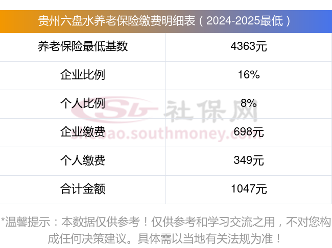 另外,需要注意的是,这些缴费标准可能会随着时间和方案的变化而调整。为了获取最新的贵州六盘水职工养老保险缴费标准信息,建议查阅相关消息或咨询当地社保部门。