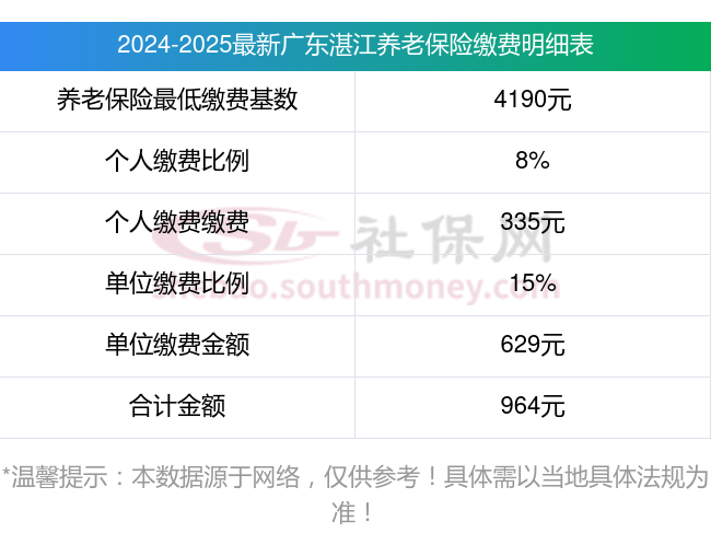据新社通app显示,广东湛江养老保险缴费基数2024-2025年最新标准如下: