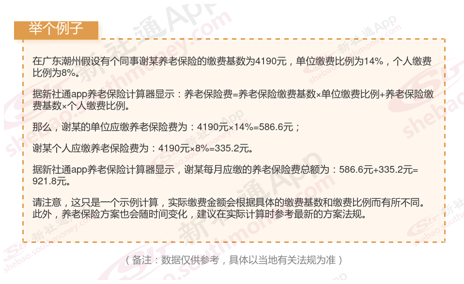 据新社通app显示,广东潮州职工养老保险缴费基数2024-2025年最新标准如下: