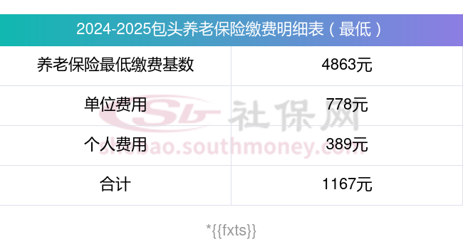 包头养老保险缴费基数2023-2024年最新标准(最低)