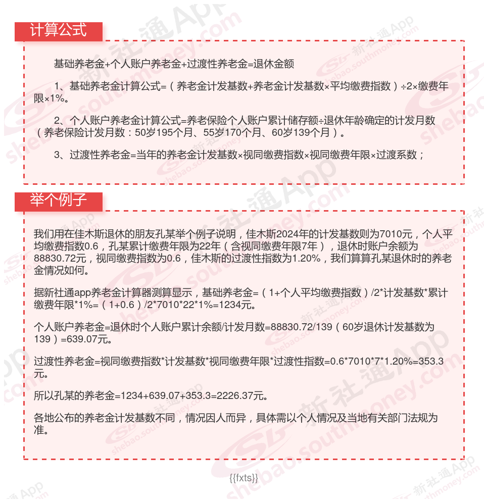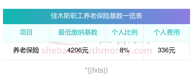假设佳木斯某企业职工小明的月工资为4206元,当地的养老保险缴费基数为4206元。据新社通app养老保险计算器显示: