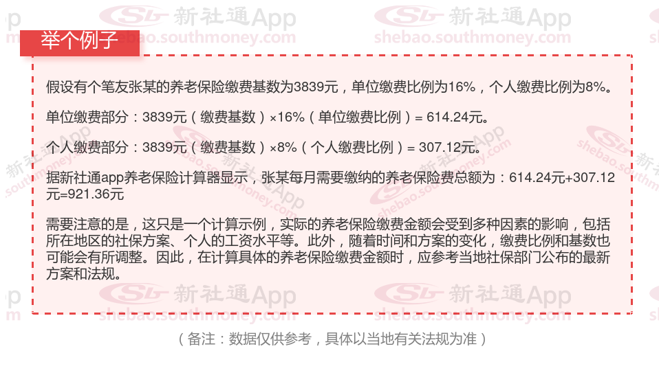 缴费基数下限暂按不低于3839元/月执行。按照单位16%+个人8%的缴费费率,单位和个人养老保险缴费金额分别不低于614.24元/月、不低于307.12元/月。