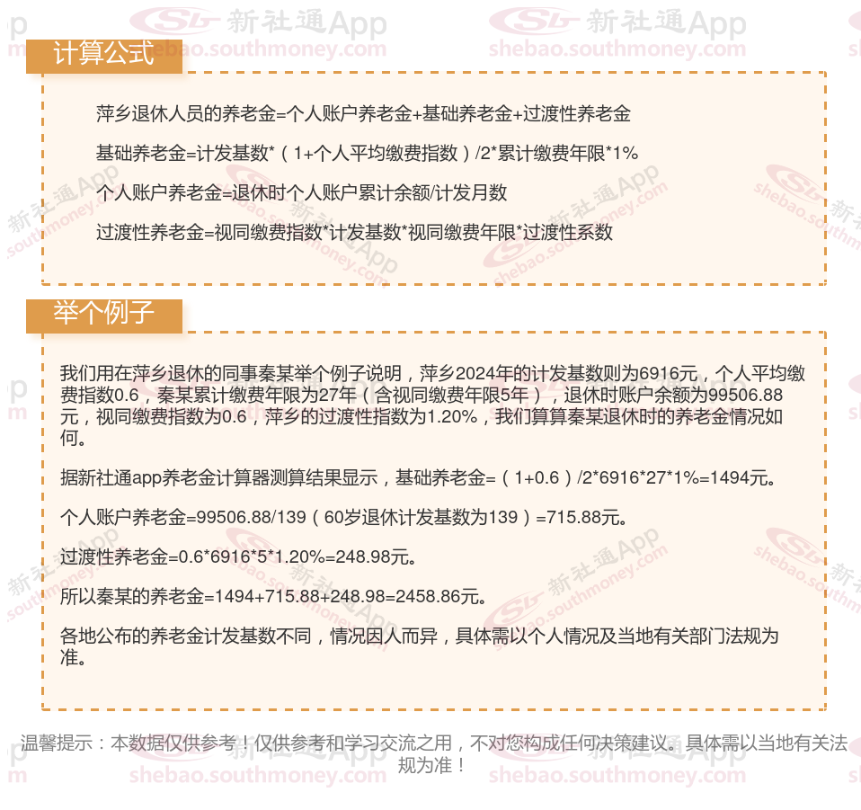 萍乡社保退休能领多少钱?(在线计算举例说明)